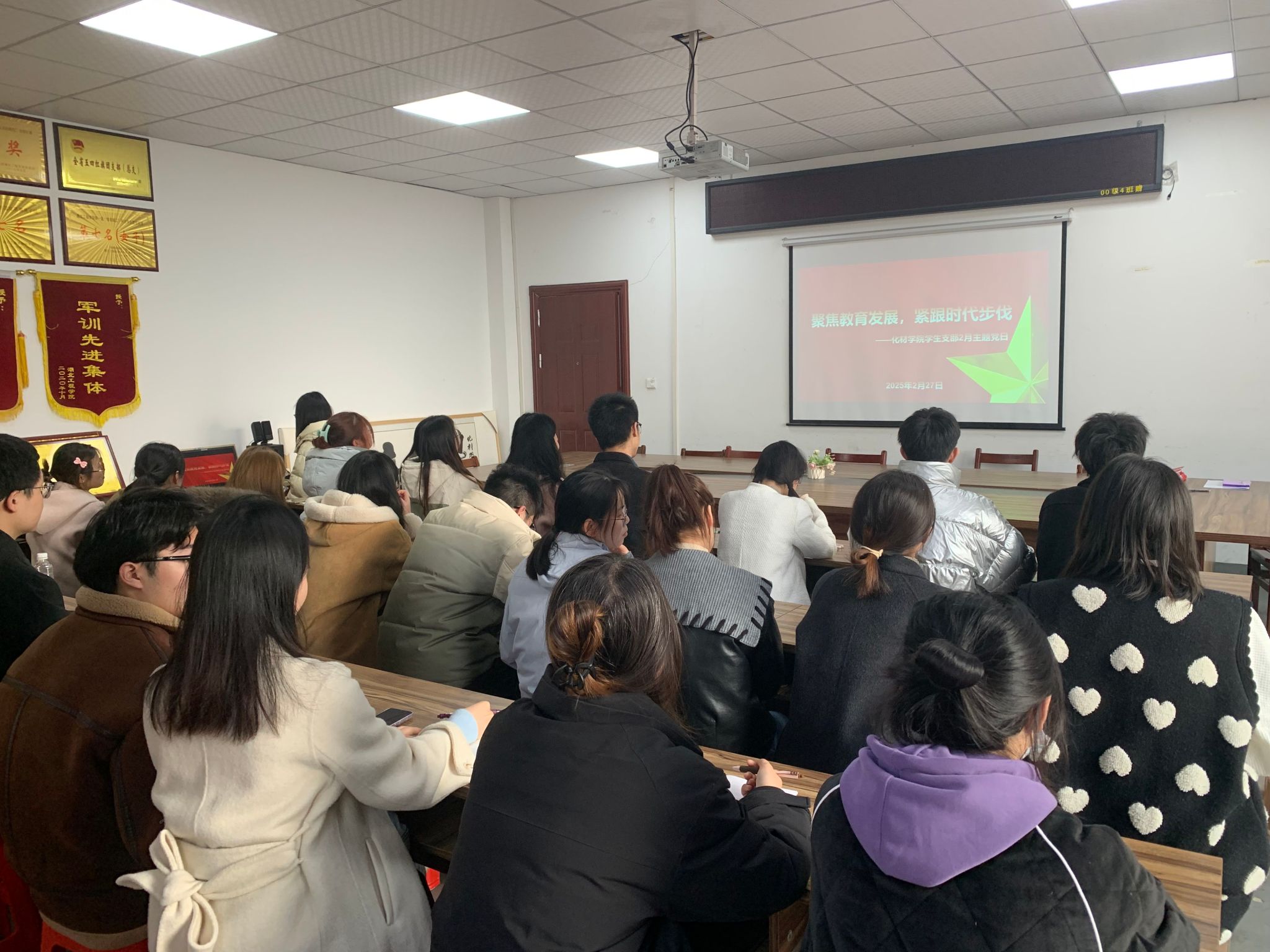 在理论学习环节,全体党员通过多种形式,深入学习习近平总书记重要讲话精神。同时,由学生党员鲍愿鸿带领全体党员认真研读《教育强国建设规划纲要》、2025年全国教育工作会议精神等内容。大家积极讨论,力求将理论学习成果转化为推动学校及学院发展的强大动力。