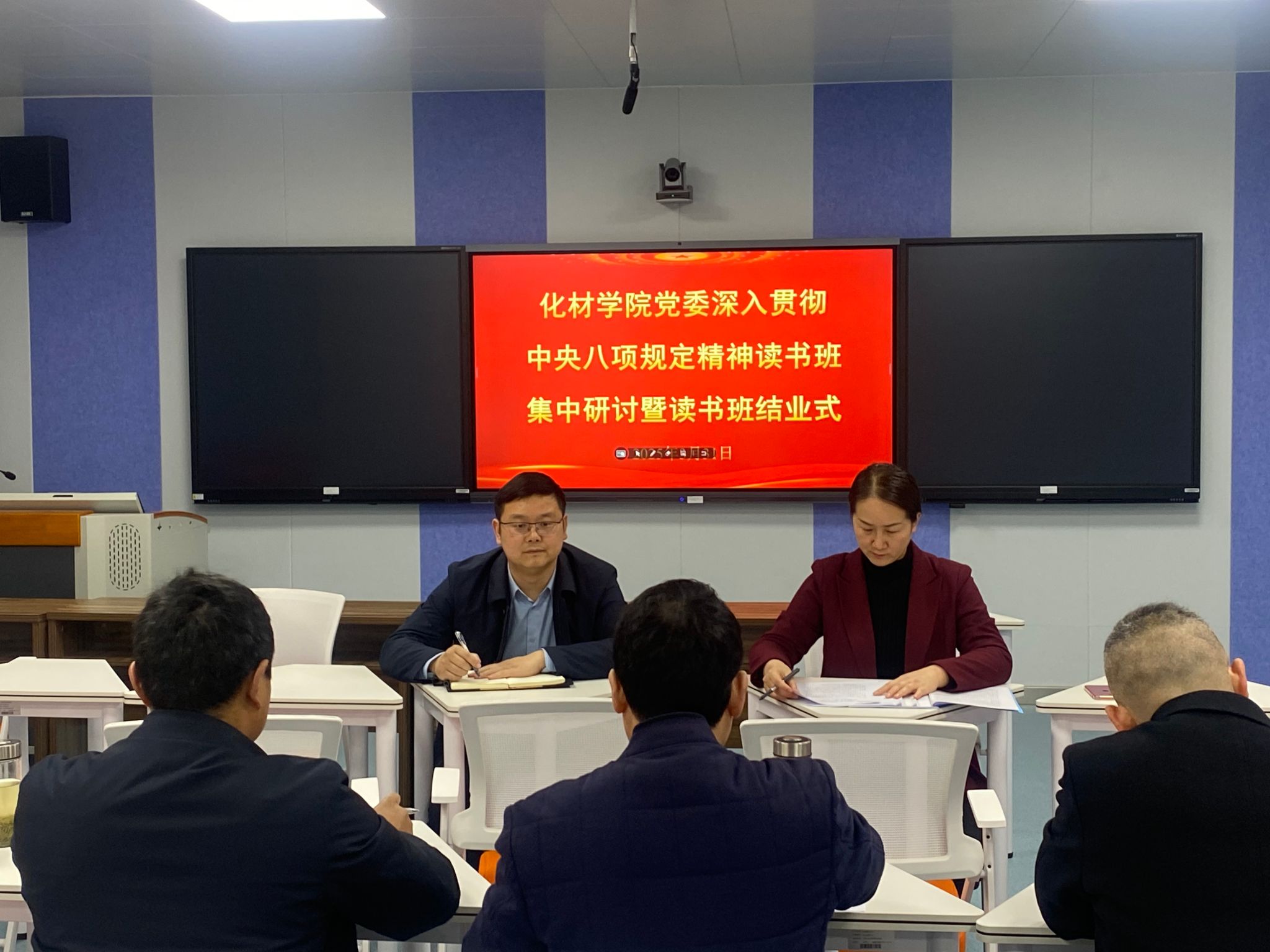 3月31日,我院党委深入贯彻中央八项规定精神学习教育读书班集体学习研讨暨结业式在化学楼330会议室举行。学院党委书记徐明霞主持会议并作总结讲话,全体班子成员围绕学习主题依次交流发言。
