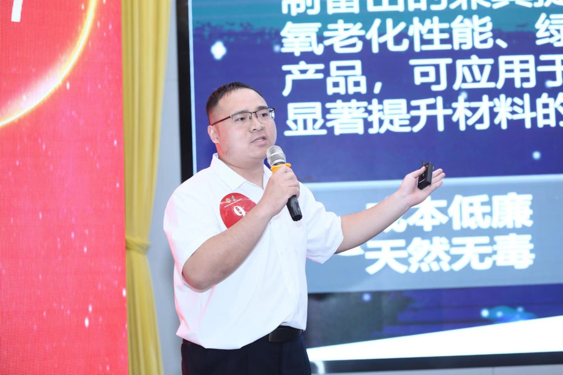 比赛分5分钟的路演和3分钟的现场答辩两个环节,何边阳老师项目参加的是创新组比赛,83个创新项目参赛,竞争异常激烈。我院何边阳老师《生物质高值化利用--绿色新型抗老化剂》项目荣获“优秀创新奖”。