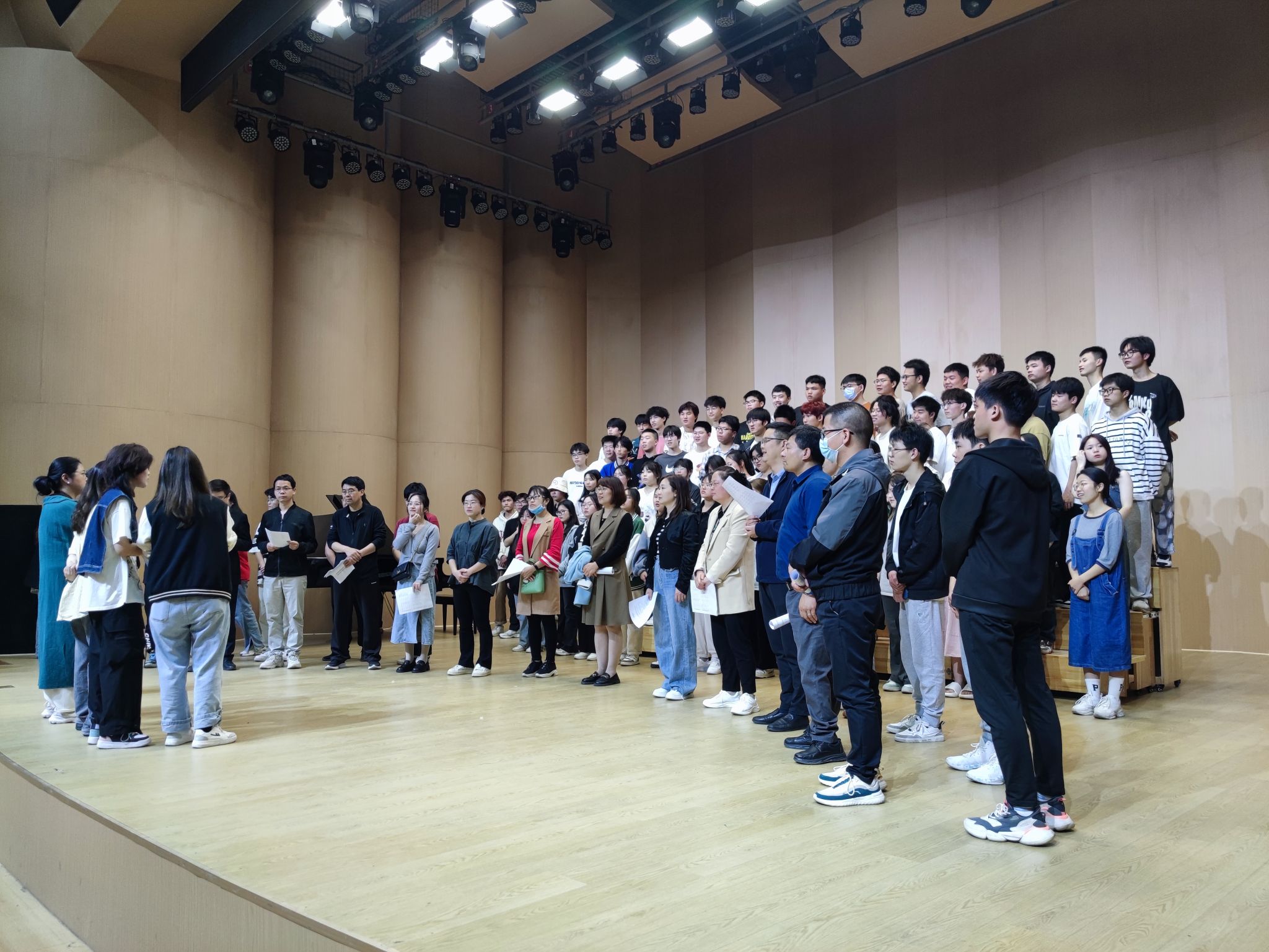 化材学院党委高度重视此次活动,动员全院师生组建了一支由院领导、班主任、教工党支部书记、学工组老师及学生组成的九十人师生合唱团。我院学生课程节奏紧凑,实验课较多,很多同学做完实验就匆匆赶去排练。排练历时两个月,院领导和排练老师们反复沟通,尽量为同学们合理安排排练时间。音乐学院老师和志愿者们,从发声技巧到情感表达,为师生们悉心指导。每次排练同学们都全身心投入。