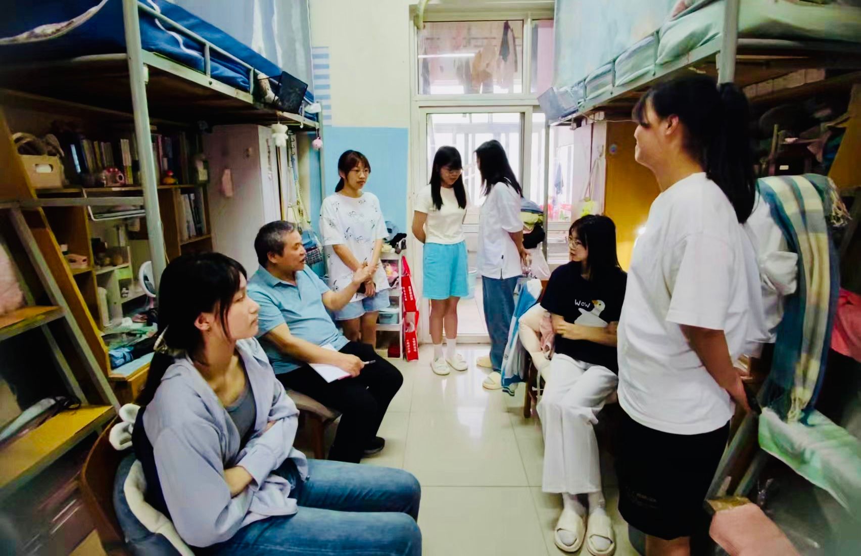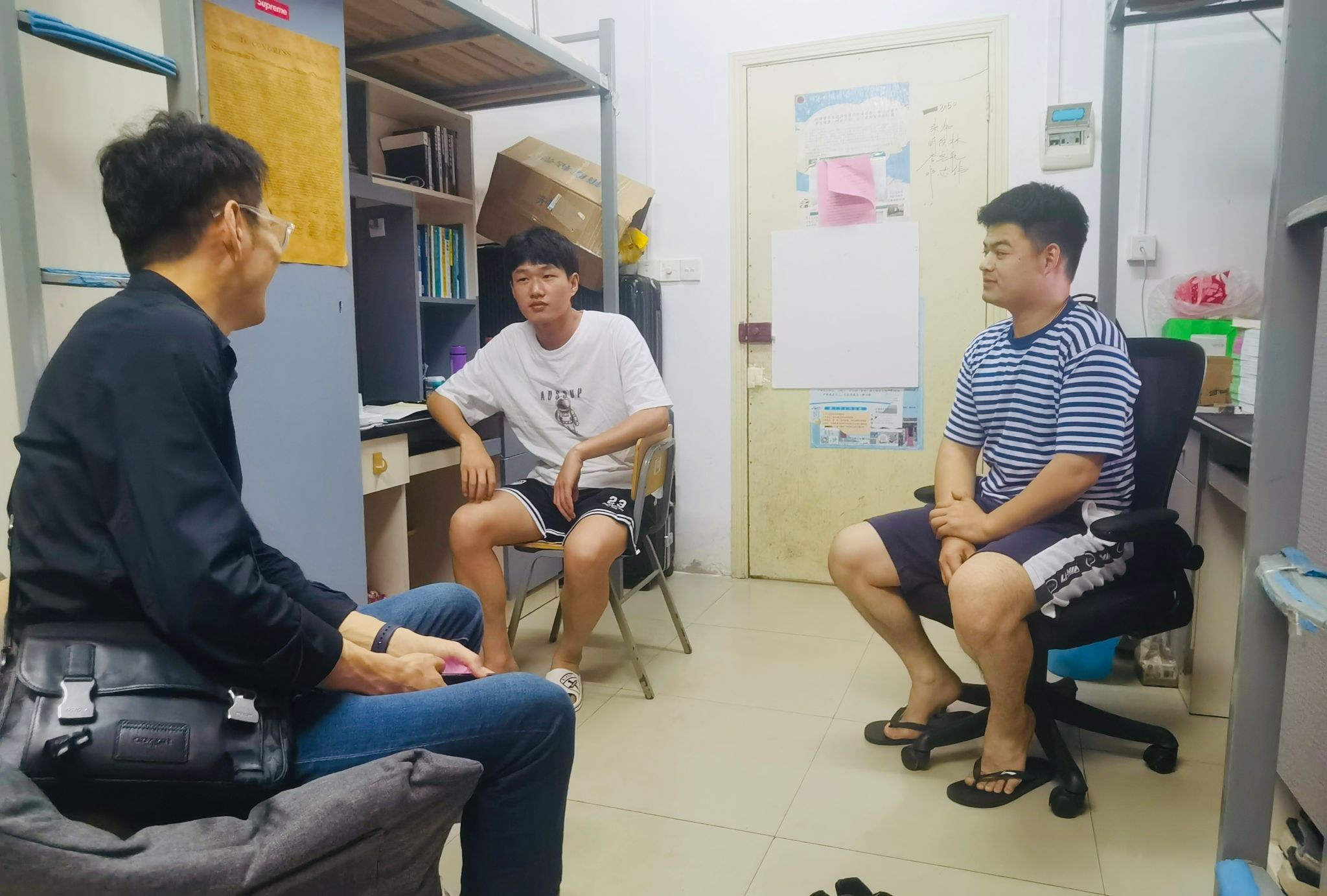 5月21日下午,化材学院党委书记汪连生,副院长颜永斌、刘海,党委副书记赵勇一行深入学生寝室开展调研活动,走访了2023届毕业生、在校学生和退伍复学学生寝室。