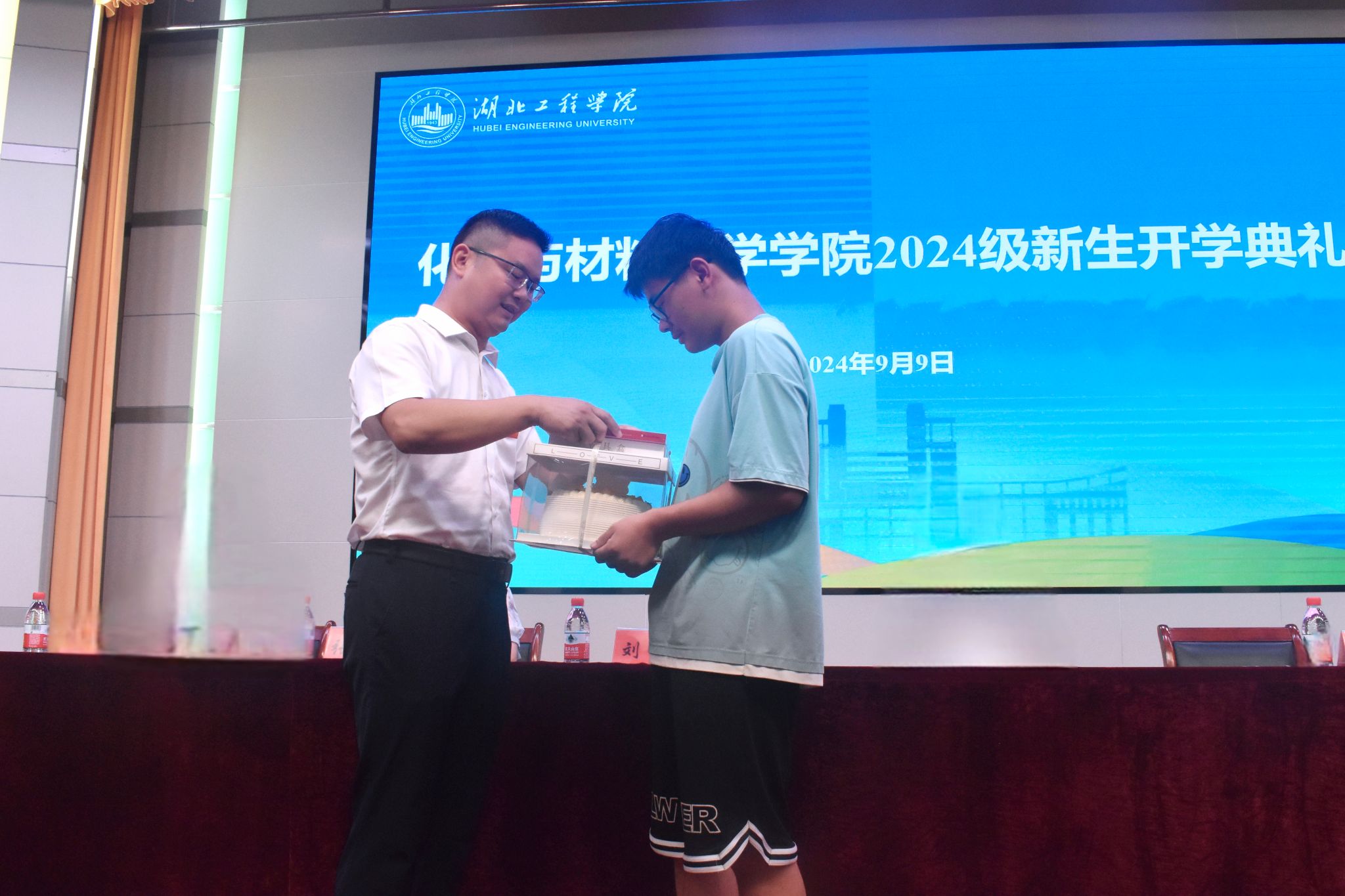 2024级化学专业学生张余鑫代表新生发言。她分享了来校报到后对湖工的真切感受以及对未来的规划与思考。她倡议2024级新生,一是作为新时代代大学生,应怀坦荡襟怀、正直做人、正派做事、诚实求学,踏实走好求学之路; 二要坚定信念,勇往直前,找到生活中的“催化剂”,翻越看似难以逾越的山。最后她呼吁,我们要扛起时代大旗,争做“高扬旗帜、卓越领航”的化材人!