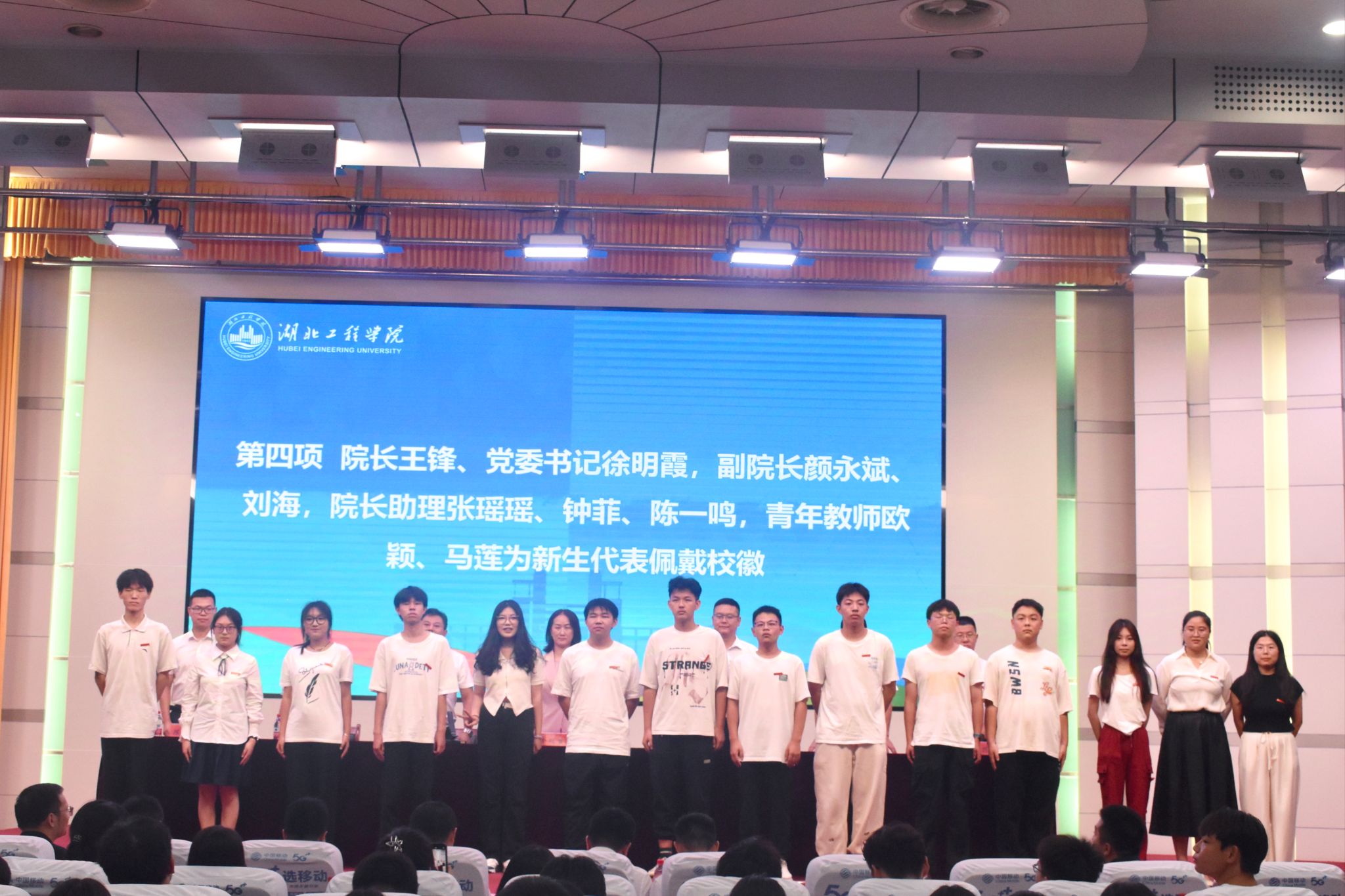 典礼上学院领导班子、院长助理、班主任代表共同为新生代表佩戴校徽。从戴上校徽的这一刻开始,每个同学正式成为WilliamHill中文的一员:共有湖工人的身份,共担湖工人的使命。