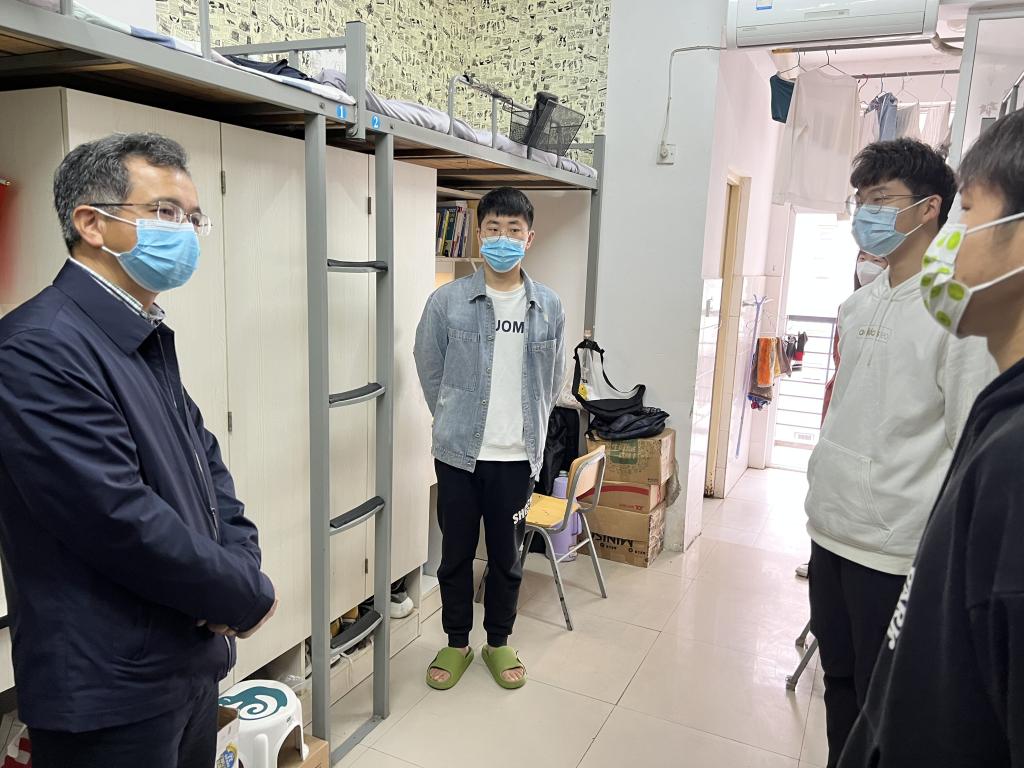 5月1日上午,党委副书记、校长潘慧明来到william威廉中文学生寝室,和同学们交流生活经验,分享成长感悟,畅谈未来发展。潘校长提醒同学们做好疫情防护,自觉遵守疫情防控管理规定,加强体育锻炼提高身体素质。