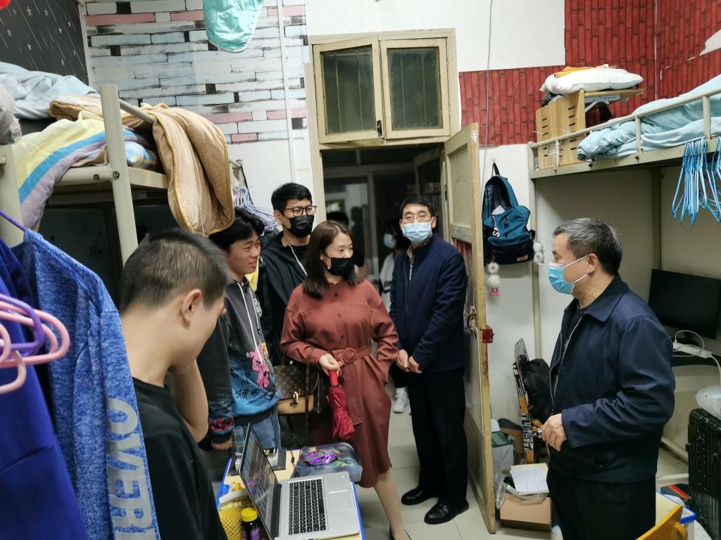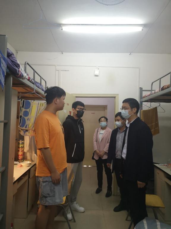 在学生宿舍,院领导关切地询问了同学们近期的生活、学习情况,勉励大家克服疫情防控工作带来的不便,在宿舍安心学习,注意寝室卫生、安全用电、强化安全意识。并叮嘱同学们要严格遵守校园相关的管理规定,积极配合学校疫情防控工作。