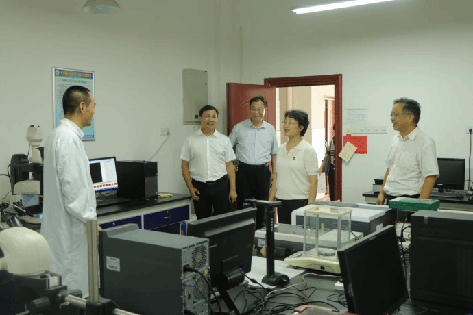 潘慧明对温雪琼一行来校考察调研表示欢迎,并简要介绍了学校建设及内涵式发展的基本情况。考察组一行实地参观了化材学院和生科院实验室。我院和生科院负责人分别重点介绍了学校在新能源、新材料、农业资源与生态保护及乡村振兴等领域服务湖北产业发展的情况。