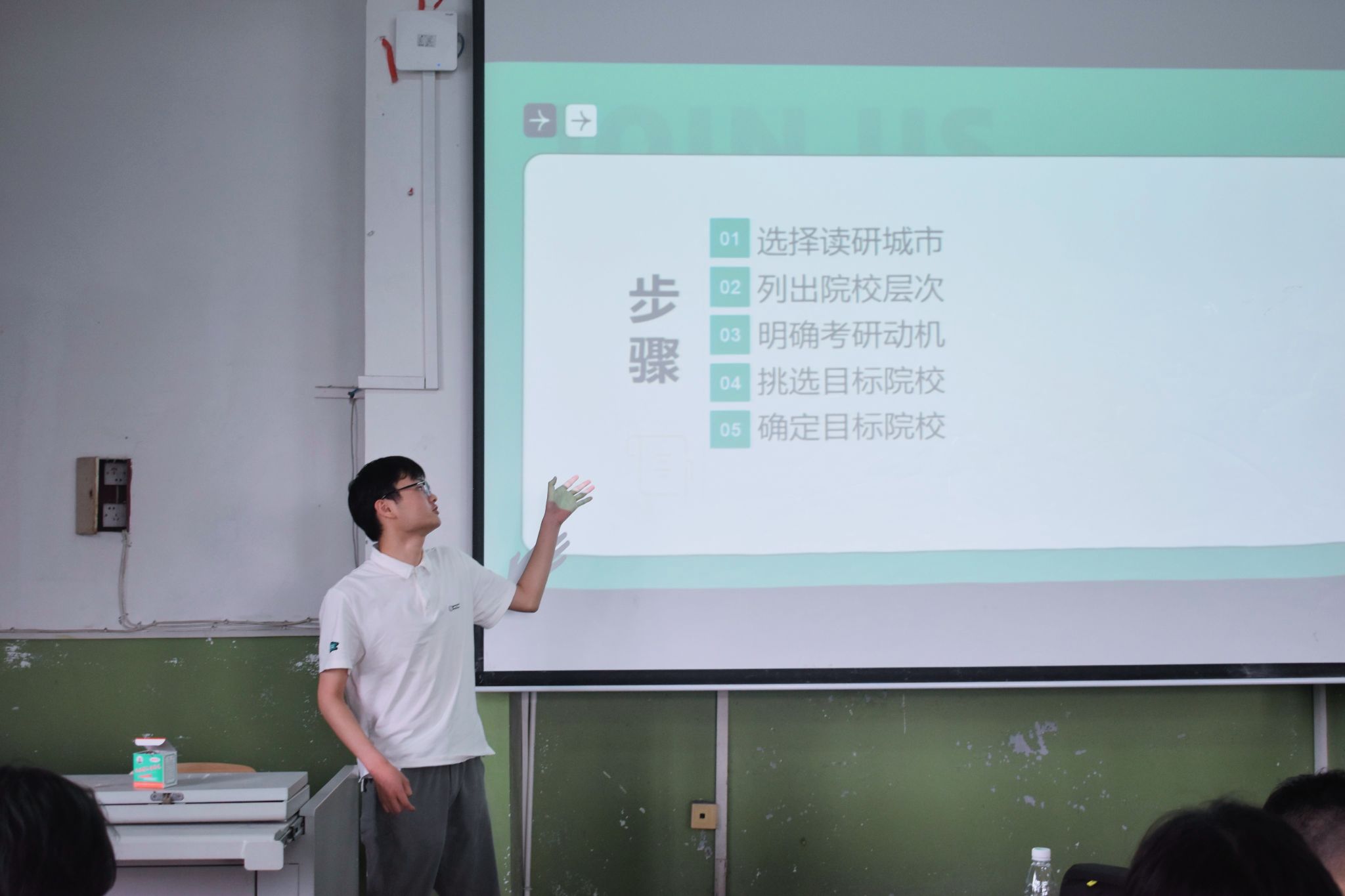 本次分享会邀请了朱航,降子帆,周泽江、杨星宇、朱彪、李英俊6位学生从自身考研经历出发,围绕如何选取专业和院校、制定复习计划、调整心态以及复试中的注意事项等方面进行分享。