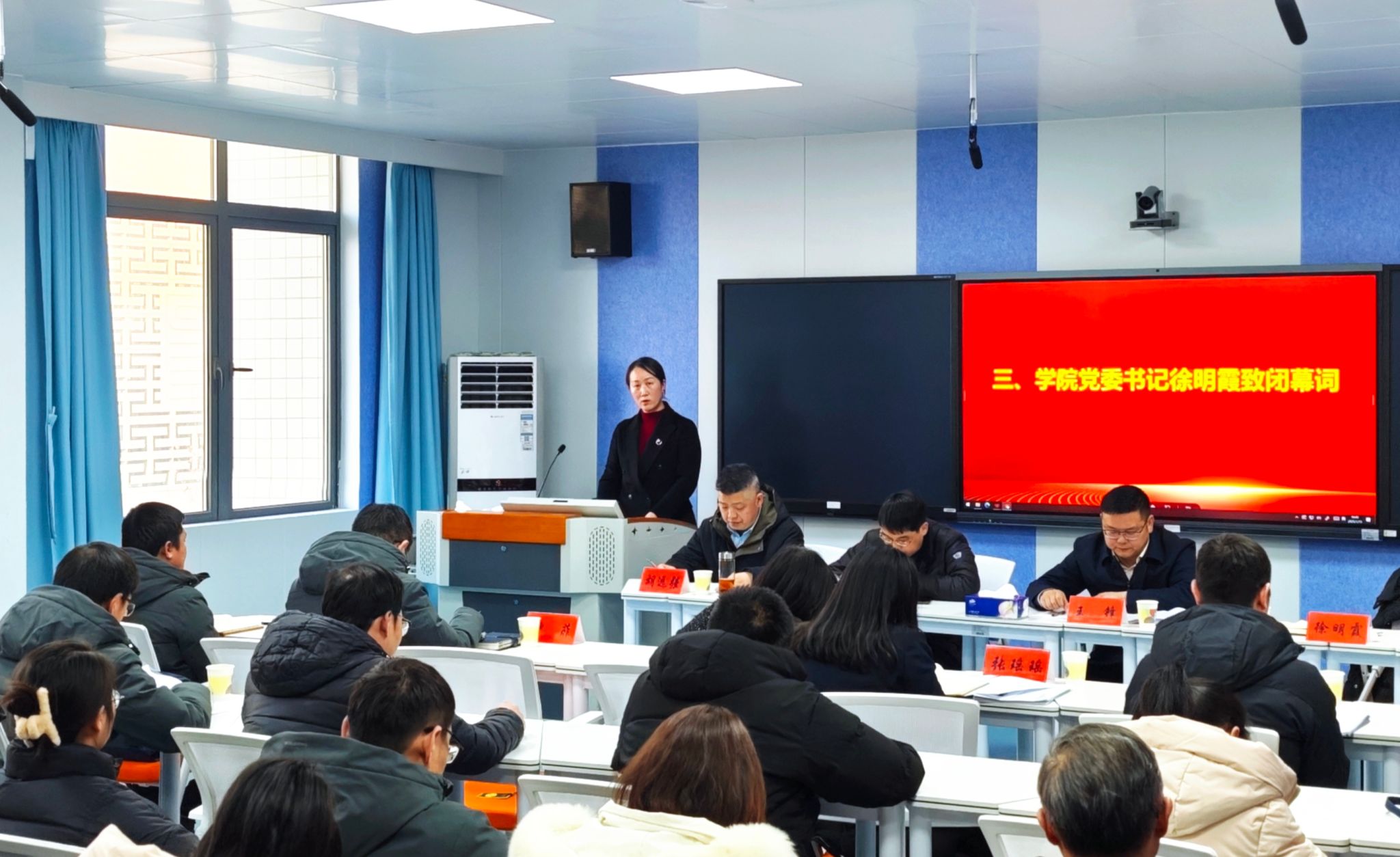 报告从“坚持政治引领,党建与业务工作深度融合持续加强;坚持建设评估,教学质量工程建设持续推进;坚持克难攻坚,学科建设工作取得新突破;坚持应用型专业底色,科研与服务地方工作取得新成效;坚持人才要素第一位,师资队伍建设水平进一步提高;坚持立德树人的根本任务,学生工作持续向好”等六个方面对学院2024年工作进行了回顾。在分析学院发展面临的差距和挑战后,报告提出了2025年学院发展总体目标:坚持以习近平新时代中国特色社会主义思想为指导,全面贯彻落实党的二十大和二十届二中、三中全会精神,深入学习贯彻全国教育大会精神、习近平总书记关于教育的重要论述和习近平总书记考察湖北重要讲话精神,围绕学校“三抓三强三提升”总体工作思路,以内涵建设为主线,持续推动各项重点工作落地见成效。