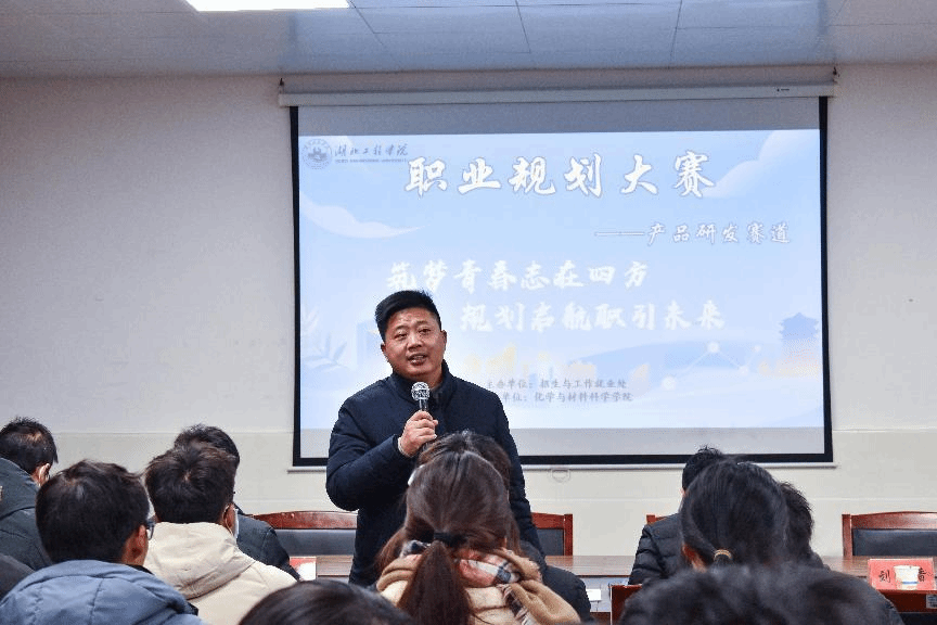 比赛分为选手主题陈述和评委提问两个环节。首先,参赛选手通过主题陈述的方式展示个人综合素质、职业规划选择、岗位认知匹配能力和未来发展潜力。比赛邀请了经管学院副院长黄宏磊教授,化材学院副院长颜永斌教授,化材学院教师刘进博士,学院辅导员刘谢香、钟继超老师担任评委。在选手们陈述完毕后,他们为参赛选手提供了宝贵的意见和建议,帮助他们更好地了解市场需求和就业市场动态。最后,评委根据选手综合表现进行打分。