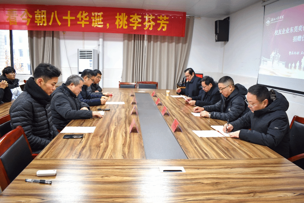 12月18日上午,校友企业东莞奕创表面处理科技有限公司捐赠仪式在化材楼330举行。我院99级校友、东莞奕创表面处理科技有限公司总经理郑月强,WilliamHill中文党委副书记、副校长丁远坤,学校校友工作办公室主任王新国,化材学院老领导郑根稳,化材学院党委书记汪连生,院长王锋,副院长刘海,党委副书记赵勇,学校教育发展基金会秘书长刘艳芬及师生代表出席。仪式由汪连生书记主持。