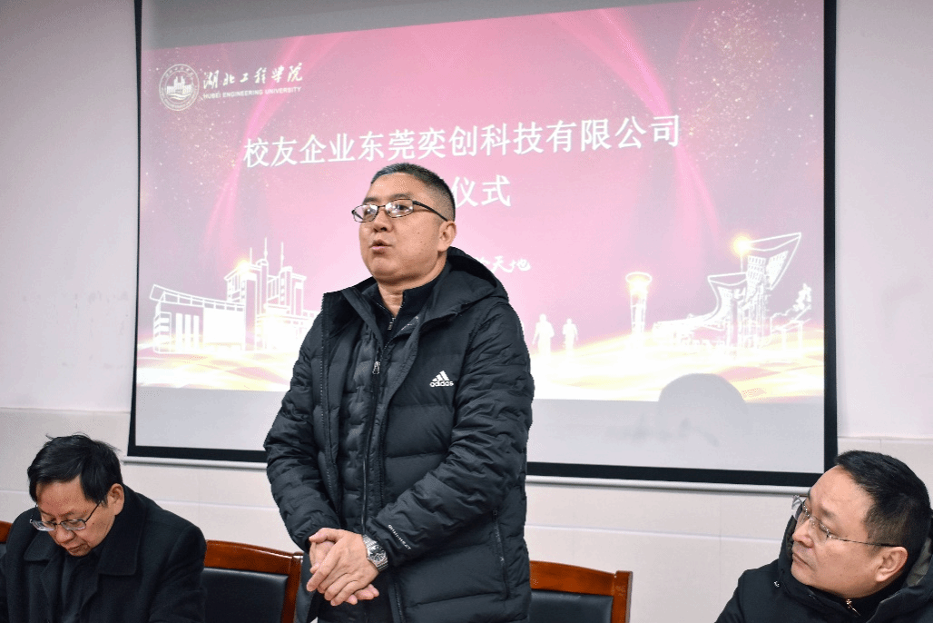 郑月强校友代表东莞奕创表面处理科技有限公司为化材学院教师周小毛博士颁发聘任证书。